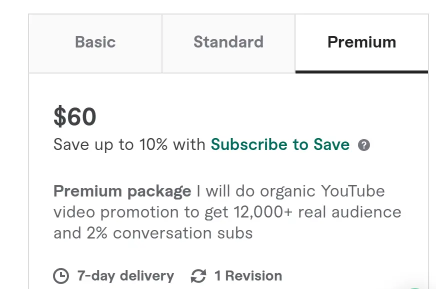 Fiverr allows you to create three pricing tiers:
